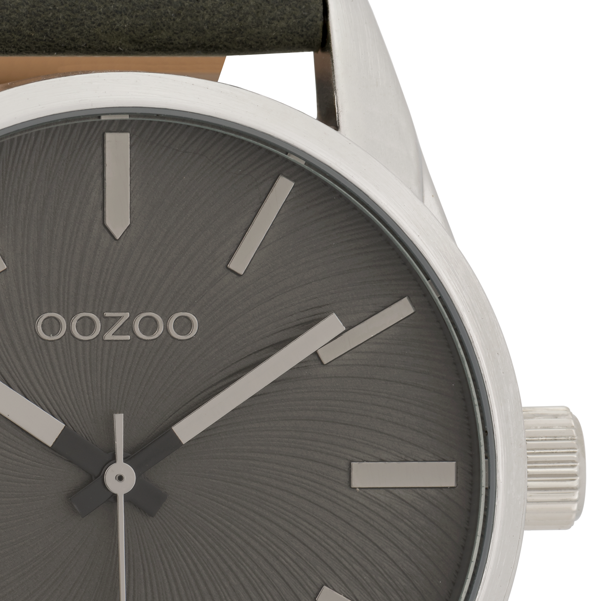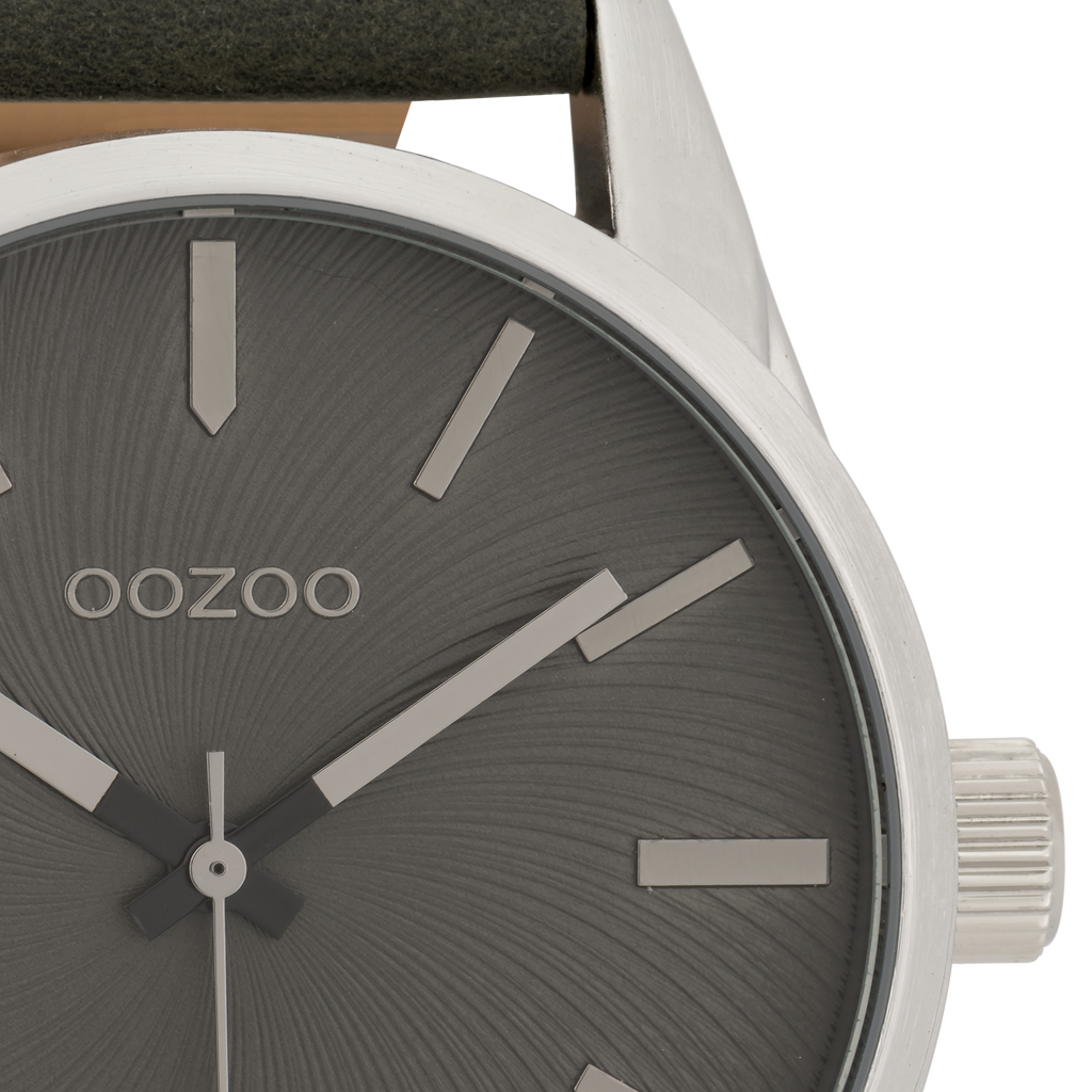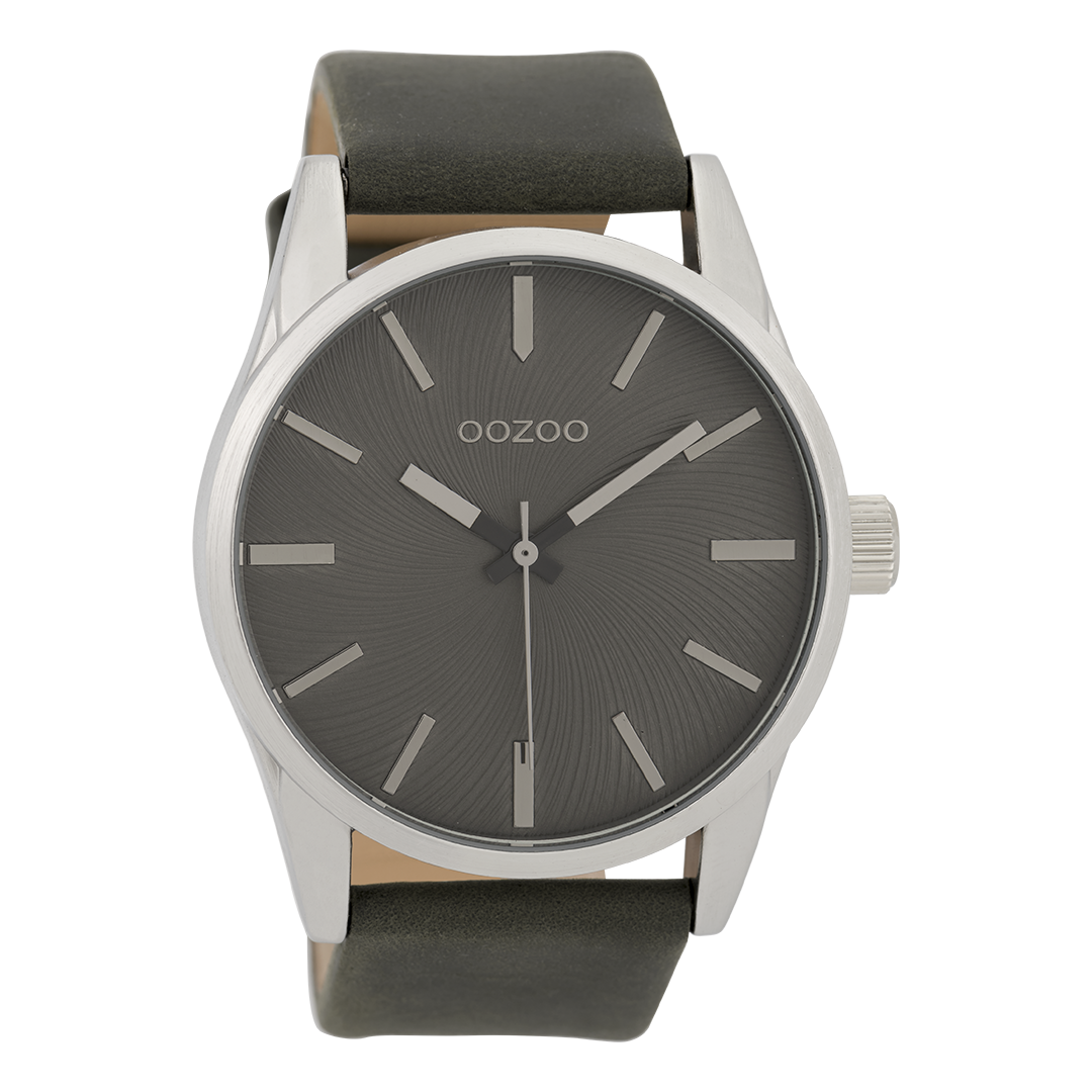 Silver coloured OOZOO watch with dark grey leather strap - C9628