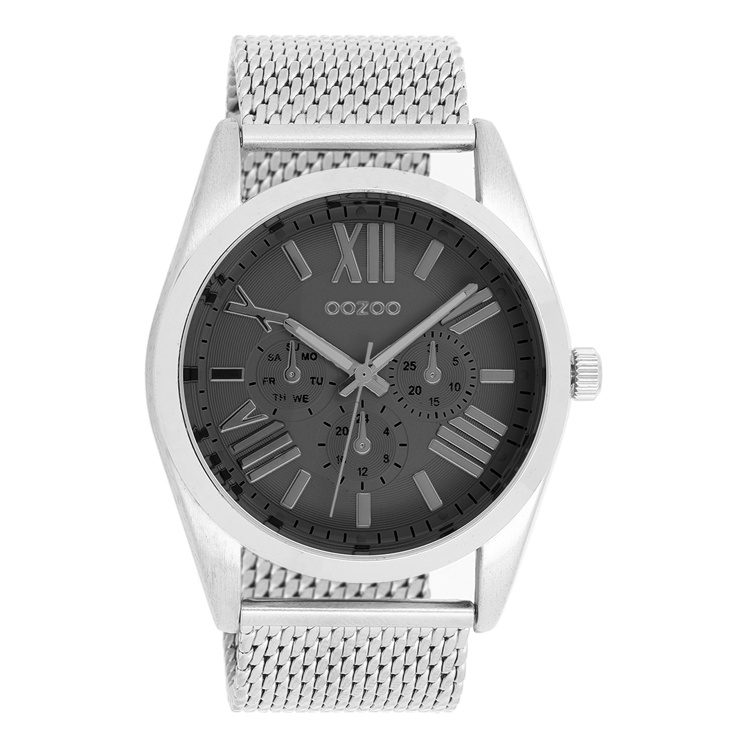 Silver coloured OOZOO watch with metal mesh bracelet - C9643