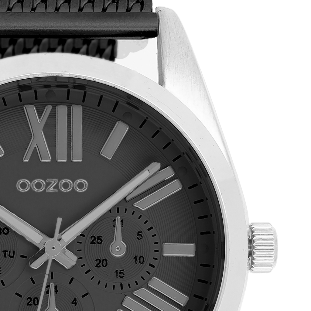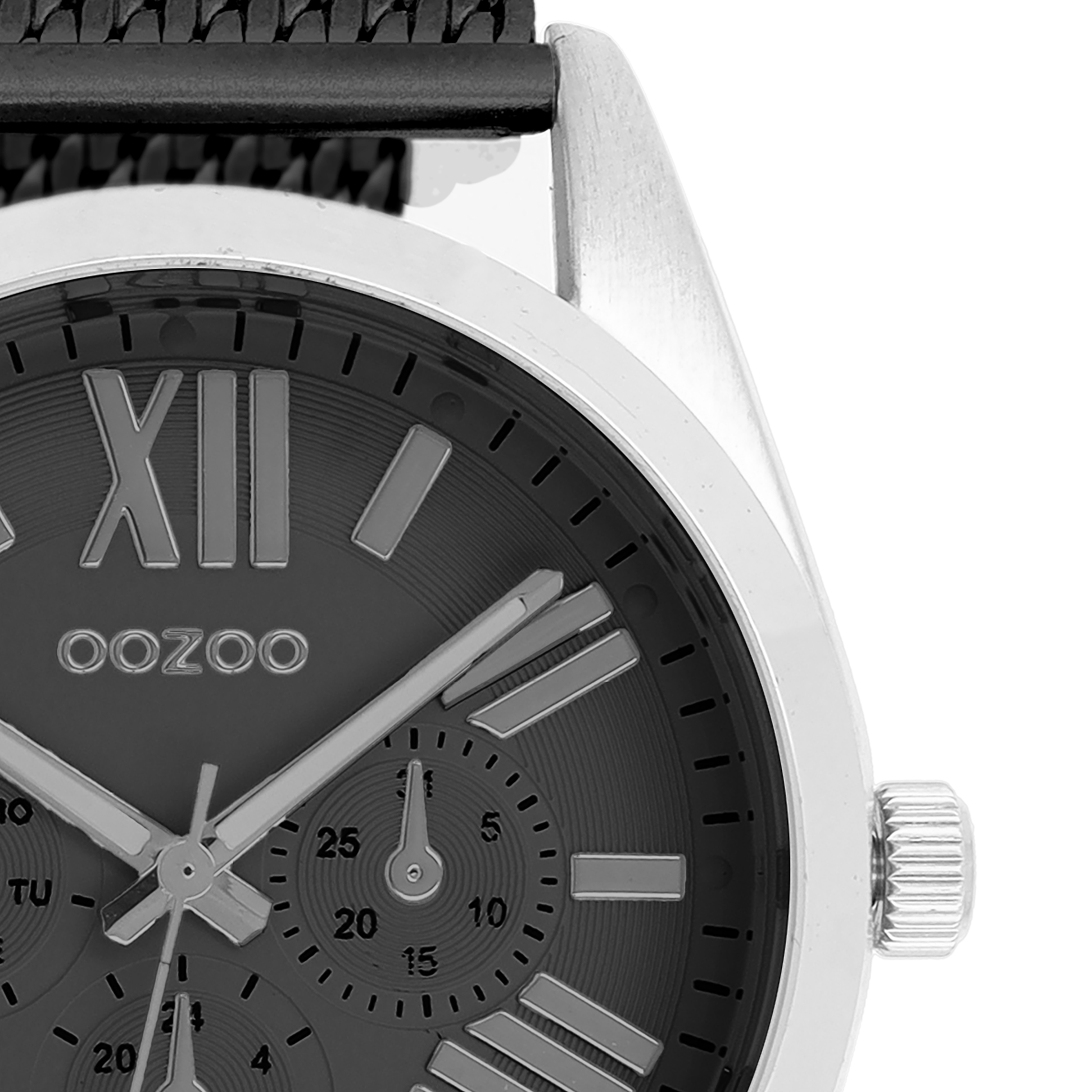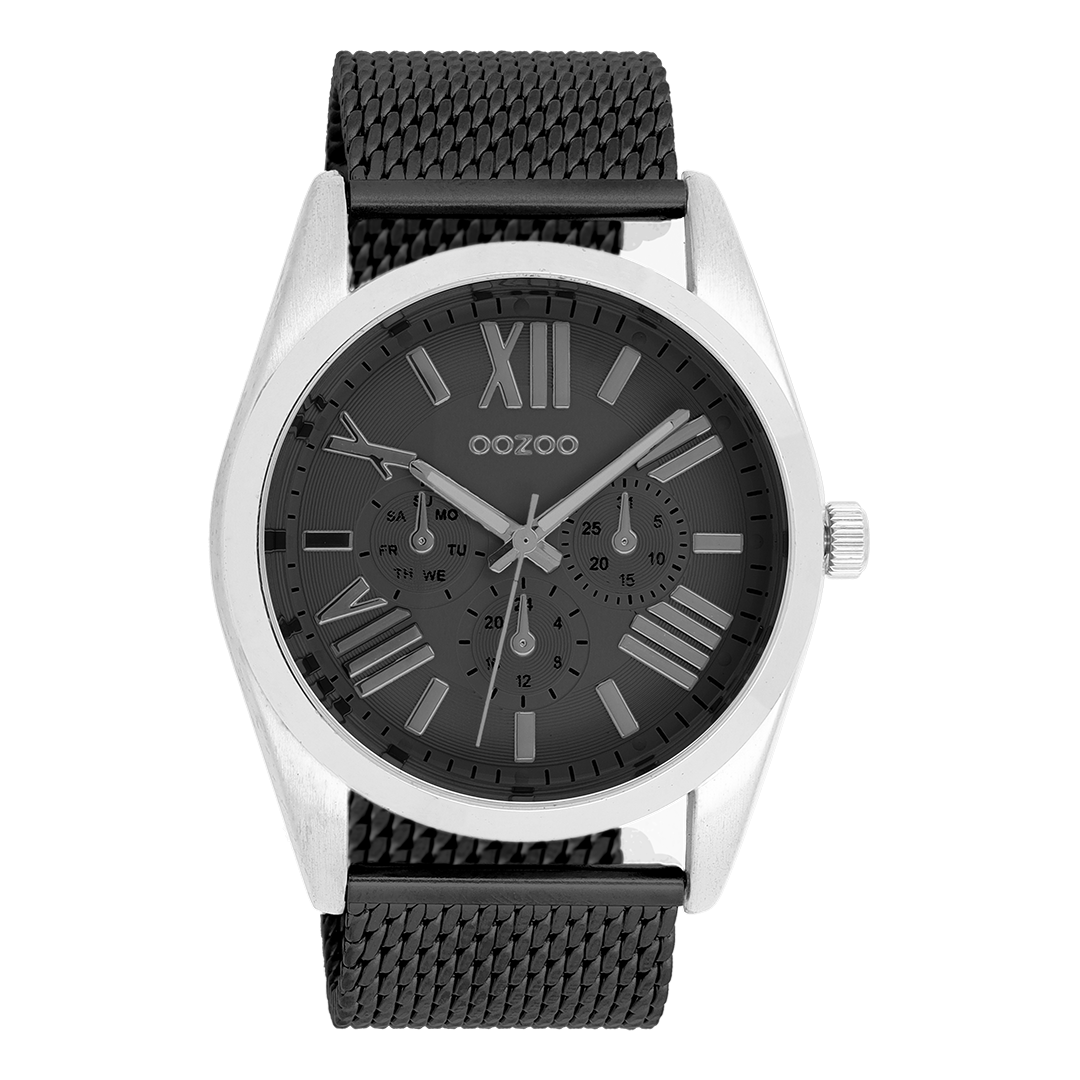 Silver coloured OOZOO watch with black metal mesh bracelet - C9644