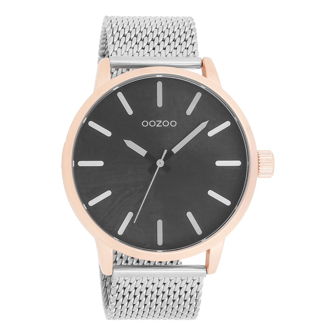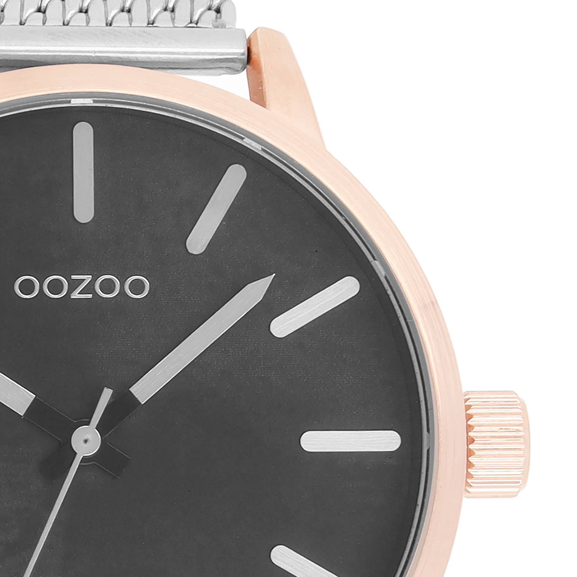 Rose gold coloured OOZOO watch with silver coloured metal mesh bracelet - C9657