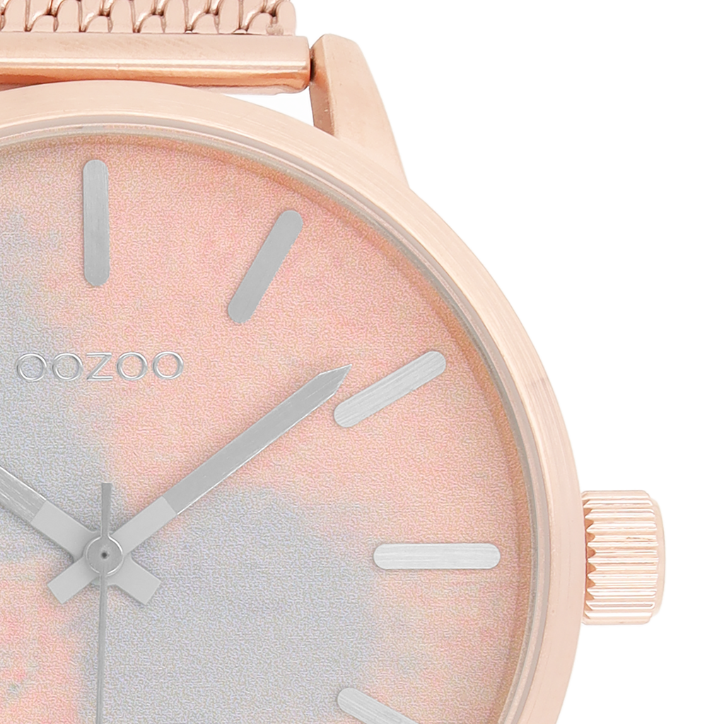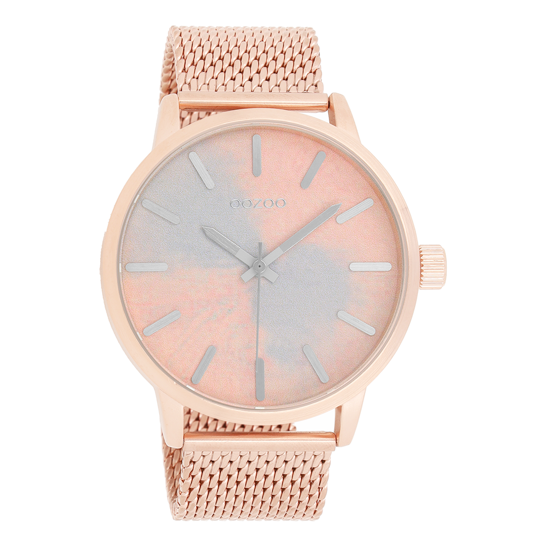 Rose gold coloured OOZOO watch with metal mesh bracelet - C9658
