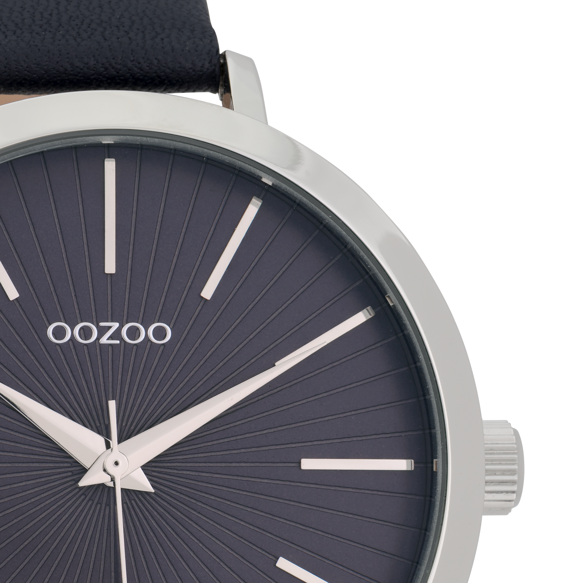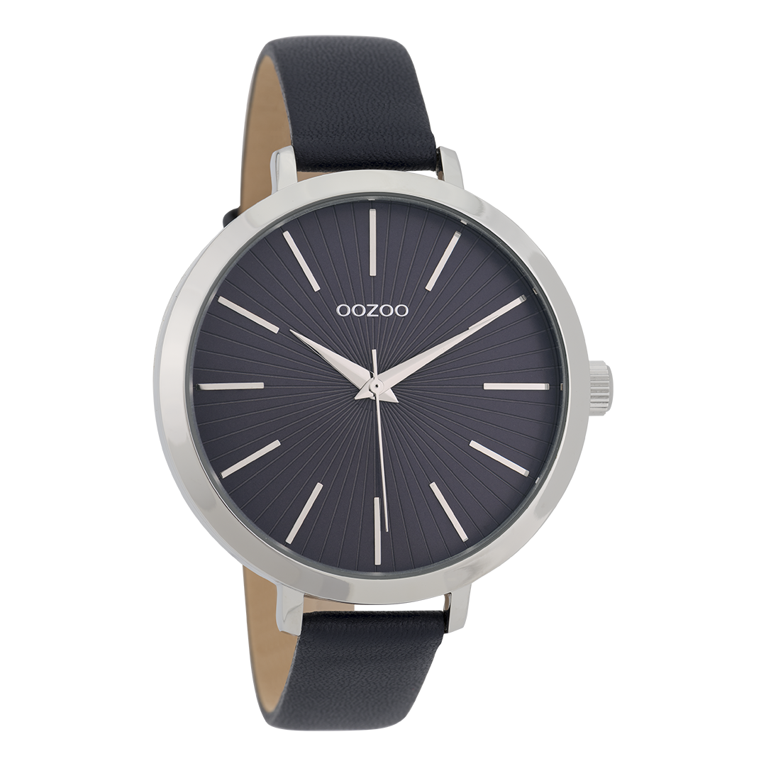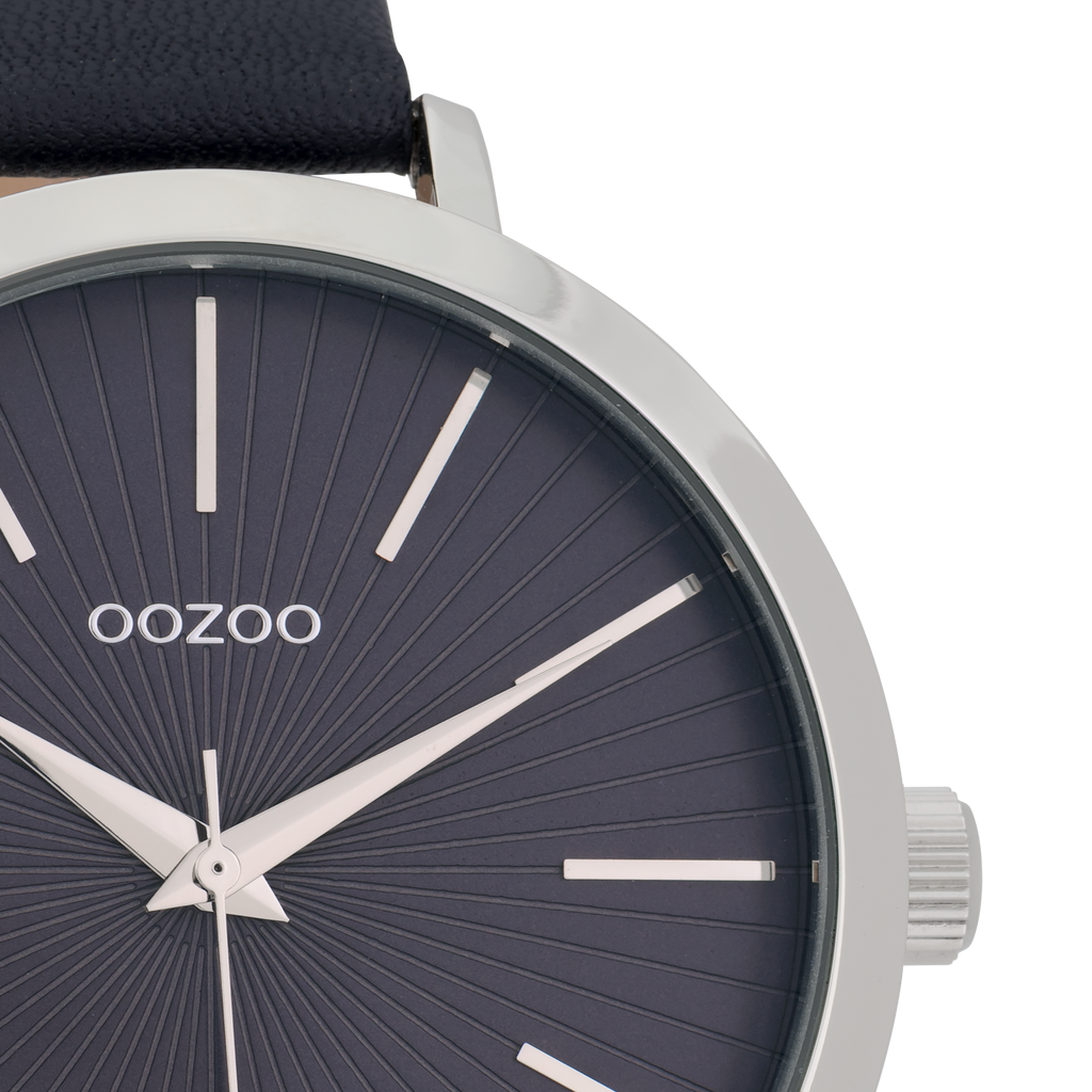 Silver coloured OOZOO watch with dark blue leather strap - C9671