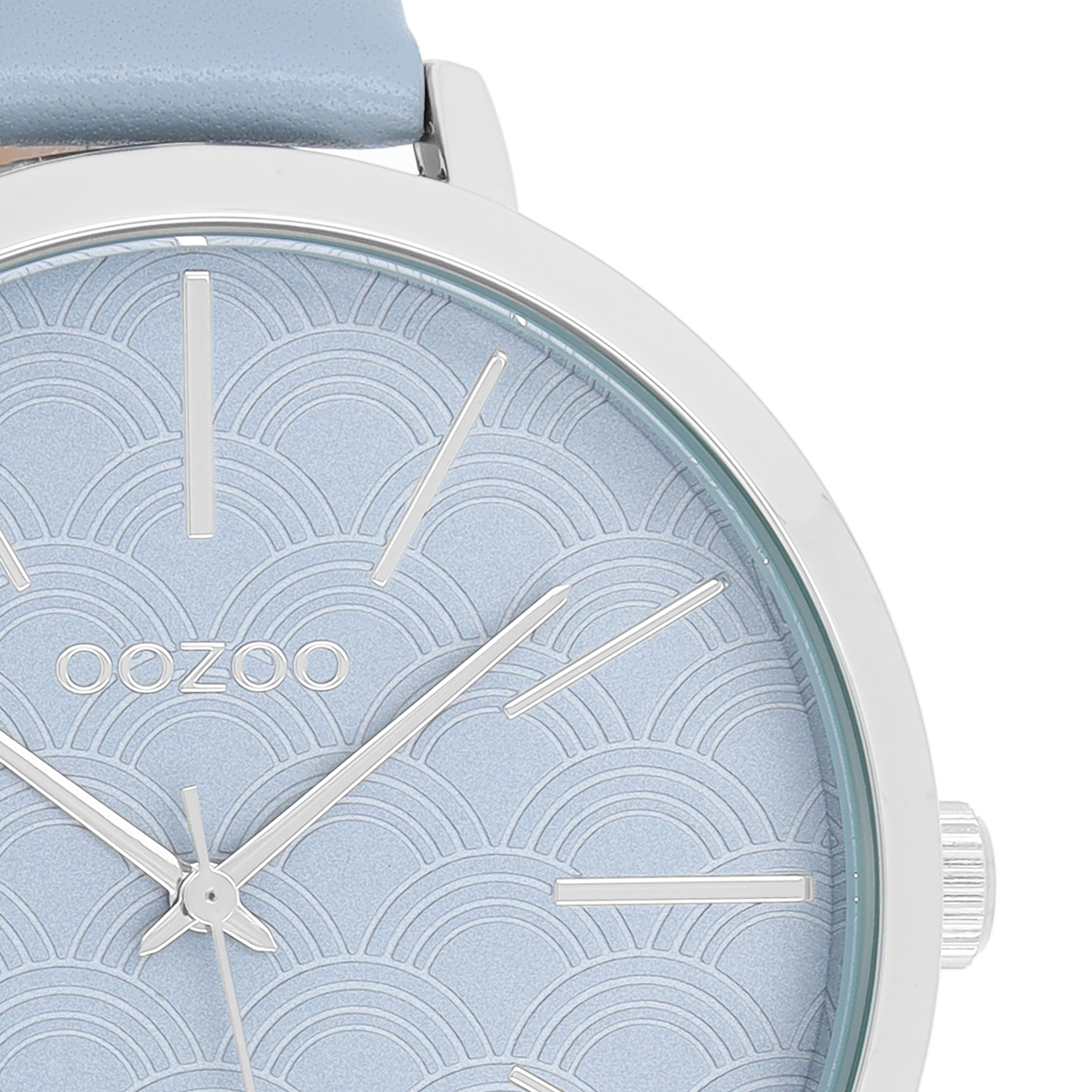Silver coloured OOZOO watch with light blue leather strap - C9677