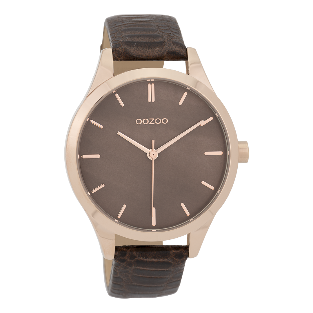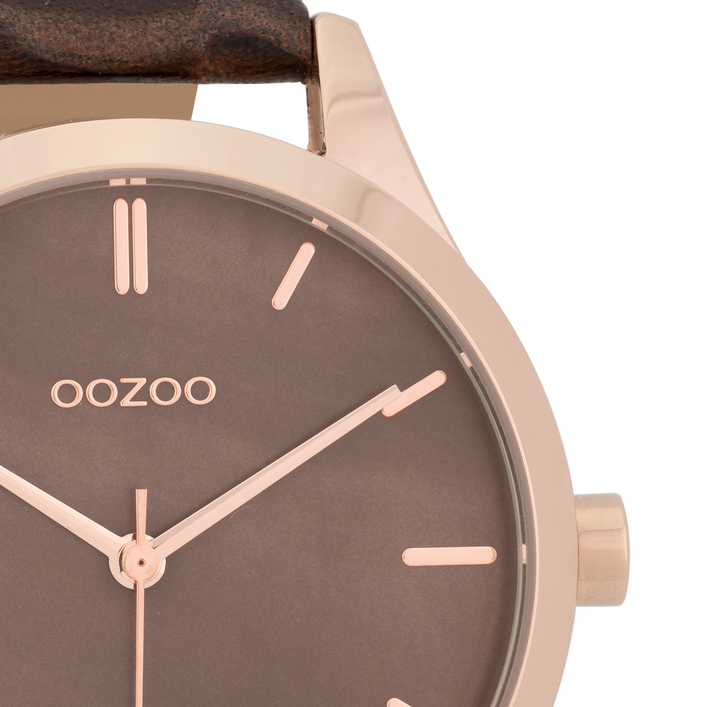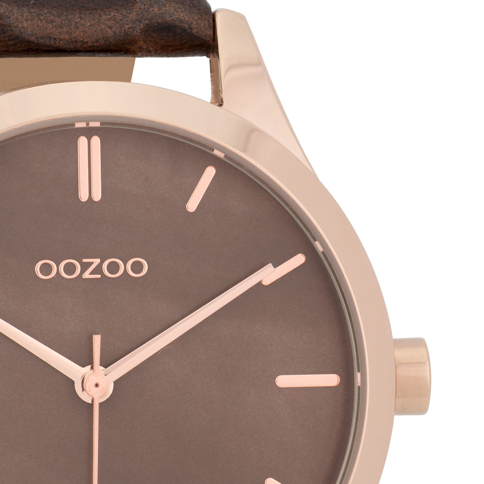 Rose gold coloured OOZOO watch with brown leather strap - C9723