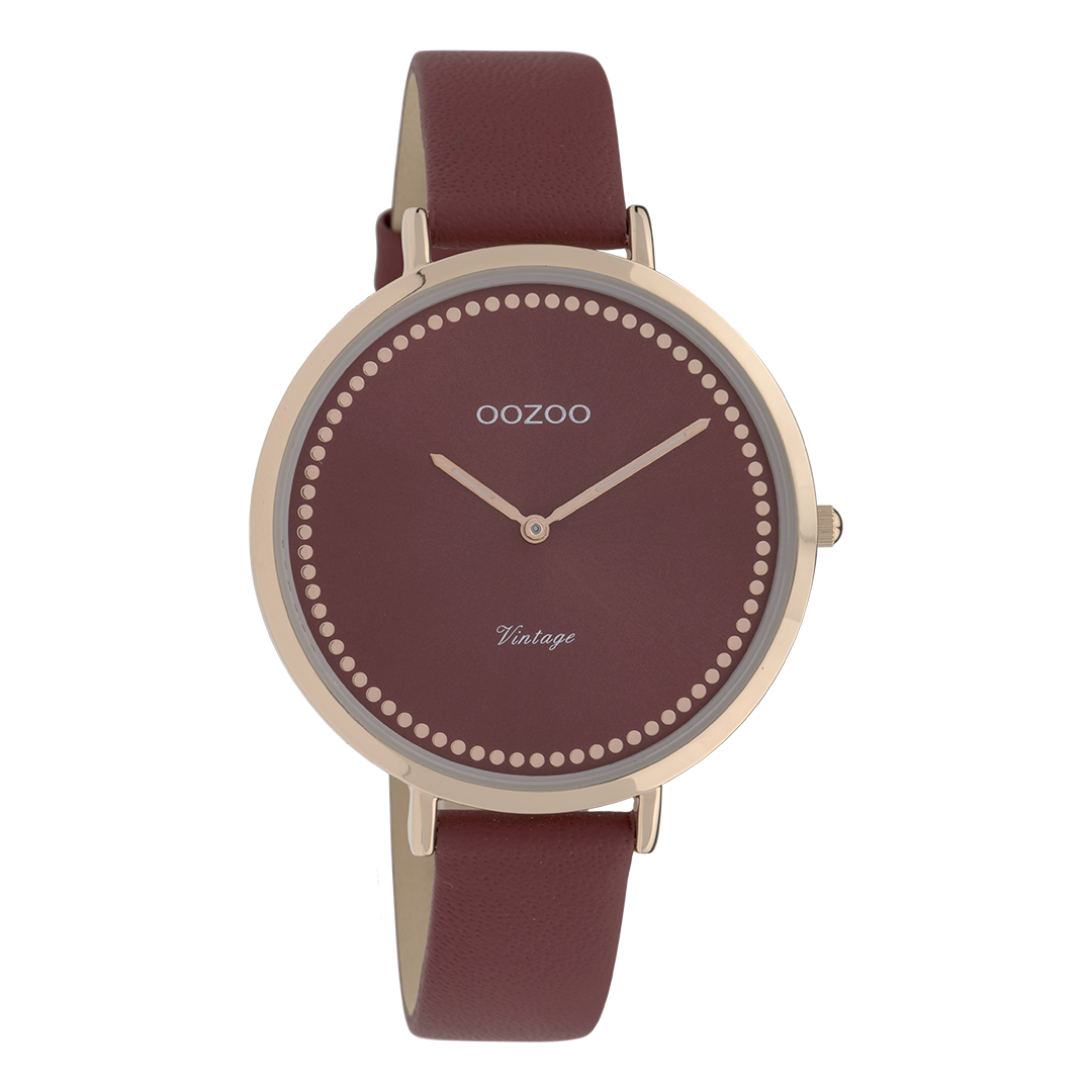 Rose gold coloured OOZOO watch with burgundy leather strap - C9851