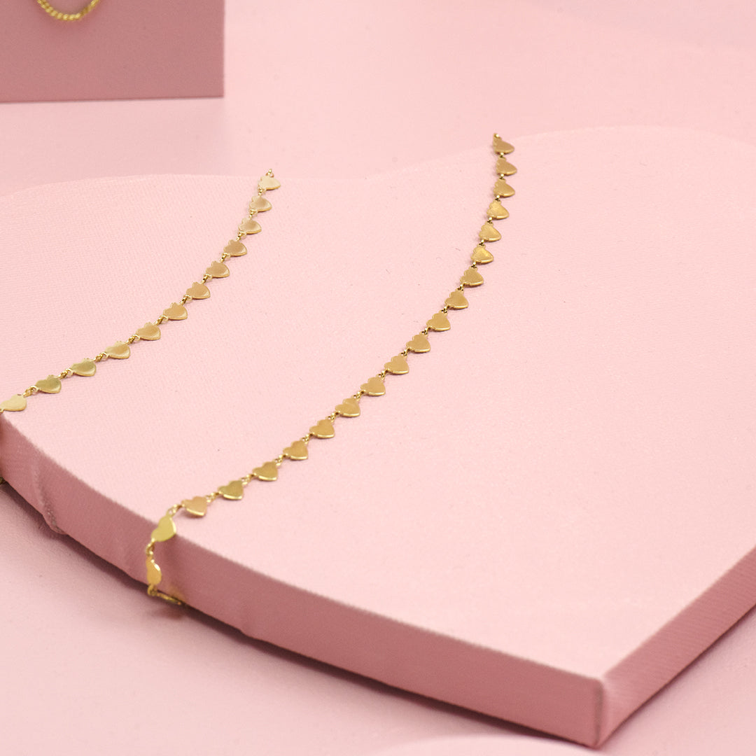 An OOZOO Jewellery set is an amazing gift for someone you cherish or just as a present to yourself! This beautiful gold coloured set of matching necklace and bracelet with hearts is the ultimate combination. The necklace is 40 cm long (+8 cm adjustable) and the bracelet is 17 cm long (+3 cm adjustable). These amazing pieces are made of stainless steel with gold coloured plated PVD and therefore long-lasting. This material ensures you that your jewellery retains its beautiful color. These products (SN-2013 & SB-1013) are covered by a 3 months warranty period (see section 3 of our Refund, shipping & warranty policy).
